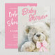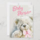 Invite friends and family to celebrate the Mother-To-Be with this Baby Shower Invitation designed with a cute baby bear with a pink ribbon on the front and the text: Baby Shower in pink. The reverse side is decorated with a watercolor pink ribbon with white text on a matching pink background. The reverse text includes: Please Join Us For A, Baby Shower, Honoring, The Name, Date, Time, Location Name (venue or residence), Address and RSVP Details. To personalize this invitation, simply insert your event details into our easy template, replacing the sample text.