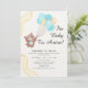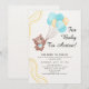 Featuring a sweet teddy bear holding pastel balloons, this soft and elegant design is perfect for a gender-neutral baby shower, welcoming both boys and girls.