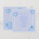 Beautiful and cute, elegant blue personalised custom boy Baby Shower party invites - with an adorable blue teddy bear, a pretty blue crib, and blue balloons. There is a lovely blue swirls and flourishes frame. All of the text is fully customisable to suit your needs - lots of fonts & colours to choose from. These stylish invitations are illustrated on both sides. If you need any assistance customising your product please contact me through my store and I will be happy to help.