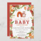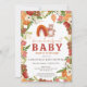 We can bearly wait! A cute teddy bear baby shower invitation featuring earth tone colour, in red, green, orange and brown with rainbow, cute little bear and orange balloon, with fall autumn floral watercolor and a modern script typography.