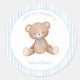 Cute Teddy Bear with blue and white pinstripe border personalised "from the nursery of" envelope seal. matching note card available.