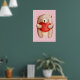Poster with a cute watercolor illustration. A brown teddy bear carrying a big red heart.