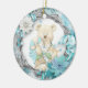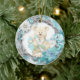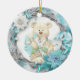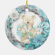 Decorate your own Christmas tree or window with this adorable Christmas ornament. This double sided design features a cute teddy bear holding baby blue Christmas ornaments, and lovely aqua blue and grey frame, decorated with blue and white poinsettia flowers.