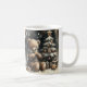 Enjoy this adorable 'bear-ry" Christmas mug for yourself or for gift giving. This "Cute Teddy Bear Christmas" design sits near a small, decorated, snow covered Christmas tree with a gold star and baubles. He wears a plaid scarf, and in the dark black distance you can see snowflakes falling. Christmas script in the middle.