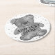 Cute Teddy Bear Custom Text Black and White Round Paper Coaster