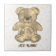 Cute baby bear watercolor. White background with paint splatter. Custom ceramic tiles for nursery decor. Gift idea.