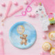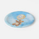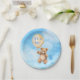 Celebrate your baby shower with these adorable paper plates featuring a sweet teddy bear holding a "it's a boy" balloon, set against a soft blue sky filled with fluffy clouds. The playful design and cheerful baby blue text create a joyful atmosphere, making them perfect for a garden or summer party in honour of a happy new arrival. Ideal for adding a fun and charming touch to any newborn celebration.