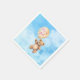 Sweet baby shower napkins featuring a watercolor teddy bear holding a gold balloon inscribed with “It’s a girl.” Set against a pastel blue sky with soft clouds, this charming and delicate design adds a joyful, feminine touch to your celebration. These napkins bring a balance of playful whimsy and elegant simplicity to baby showers, birth announcements, or gender reveal parties.