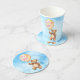 Cute teddy bear girl floating balloon baby shower round paper coaster