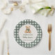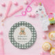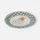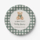 Cute Teddy Bear Green Plaid Baby Shower Paper Plate