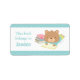 Label the child's books with this cute label that has a cartoon drawing of a cute teddy bear in a tee and shorts lying on the floor reading a book. More books are available beside him for reading. Personalise with child's name. Polka dots for border. Designer is Rusty Doodle.