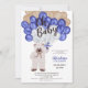 Cute teddy bear navy blue balloons boy baby shower invitation