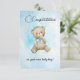 Welcome a precious baby boy with this sweet blue themed card featuring an adorable teddy bear illustration. A thoughtful and charming way to congratulate the new parents on their bundle of joy.