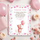 Cute teddy bear with balloon baby shower Thank You card in pastel pink and floral pattern. You can easily customise the texts in modern fonts. Please check my shop Gulden Designs for more products of this collection.