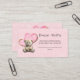 Cute Teddy Bear Pink Gold Balloon Diaper Raffle Business Card