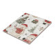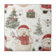 A charming Christmas pattern ceramic tile featuring adorable teddy bears dressed as Santa, festive gift boxes, decorated Christmas trees, candy canes, ornaments, and snowflakes on a white background. This cozy holiday design blends warm, hand-drawn illustrations with a playful winter feel.
