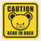 Minimalistic vector graphic style. This is a very clean cartoon style head of a teddy bear. In black and yellow as a warning signs you see in nature parks. "Warning Bear in area".