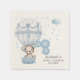 Baby shower art featuring a baby boy. Cute teddy bear sitting in a basket with balloons in blue colours. Adorable baby shower hot air balloon design with blue stars around. Personalise by changing the text and the details.
