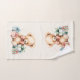 Towel set with a cute illustration featuring a Victorian style teddy bear. Wearing a fancy red bow. Drawn in a a cute old fashioned vintage style. Red and blue pastel Christmas presents surround this warm-hearted bear.
