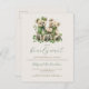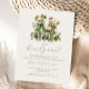 This cute twins baby shower invitation postcard features a pair of sweet watercolor teddy bears wrapped in green ivy, above the words "we can bearly wait" in green handwriting script. Personalise the text with the name of the mum-to-be in green script and the details in sepia sans serif font on a beige background. Ideal for a gender-neutral twins baby shower.