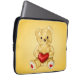 Cute teddy laptop sleeve with a cute fluffy yellow teddy holding a red heart.