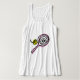 Cute tennis tank tops for women and girls. Pink racket and yellow tennis ball artwork shirt for women and girls who loving playing tennis. Funny tanktops for sports. Make your own for tennis player, coach and fan. Personalise clothes with your own name or monogram View more unique tennis clothing in our shop.