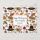 Turkeys, pies, pilgrim hats and more make up this fun pattern of Thanksgiving motifs. In the centre, a simple box where you can create your own Thanksgiving message. Be sure to edit the text on the front AND on the reverse, so that your cards are fully personalised.