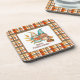 Cute Thanksgiving-themed coaster set features a pair of gnomes holding pumpkin and pie with Autumn coloured plaid background and "Happy Thanksgiving" text.