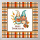 Cute Thanksgiving themed wall art features a pair of gnomes holding pumpkin and pie with Autumn coloured plaid background