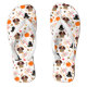 Cute Thanksgiving Pattern with Turkey, Pumpkin, Pilgrim Hat, Leaves, Gobble Gobble and Give Thanks Text Flip Flops.