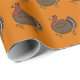 A cute thanksgiving turkey trotting along this orange wrapping paper
