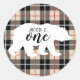 Cute Thompson Camel Plaid Bear 1st Birthday Party Classic Round Sticker