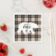 Fun and wild, throw an adventurous 1st birthday party for your little cub. These adorable Cute Thomson Camel Plaid Flannel Pattern Baby Photo 1st Birthday paper napkins match our invitations. Features red, black, camel (tan), and white striped gingham flannel plaid pattern with a black bear and typography. All text is customisable to fit your party going needs. Change the photo of the baby feature to your little boy to complete.
