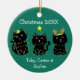 Cute Three Cat Christmas Lights Custom Names Green Ceramic Tree Decoration