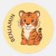 Cute Tiger Cub Custom Name Yellow Classic Round Sticker