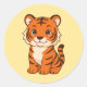 Cute Tiger Cub on Yellow Classic Round Sticker
