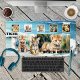 A desk mat featuring a cute tiger cub on a beach background. You can replace 7 watercolor tiger images with your custom photos if you like. Nice for a beach house and cat lovers.