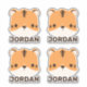 This design features cute tiger cartoon illustration with personalised name in brown modern sans serif font style.
