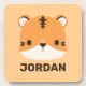 This design features cute tiger cartoon illustration with personalised name in brown modern sans serif font style on pastel orange background.