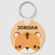 This design features cute tiger cartoon illustration with personalised name in brown modern sans serif font style on pastel orange background.