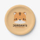 This design features cute tiger cartoon illustration with personalised name in brown modern sans serif font style on pastel orange background.