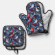 Cute tiled Winter birds Oven Mitt & Pot Holder Set