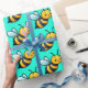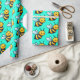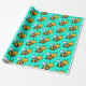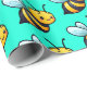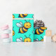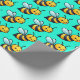 Cute Cartoon yellow bees pattern on bright turquoise green background Wrapping Paper
