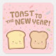 Come celebrate the New Year with this cute pun humour design! The casual handwritten like text reads "Toast to the New Year!" Instead of champagne and raising your glasses, how about toasts of cute smiling bread with colourful confetti in shapes of circles, stars and squares flying around in the background. Put a smile and cheer on the recipient's face, especially girls. Background colour can be changed to colour of your choice.