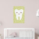 Adorable cartoon tooth on a green pattern of teeth, stars and swirls - click CUSTOMIZE to add your own text or business logo art - also makes a truly unique gift idea! {{Original art by me, Melanie Taylor - CreativeMel.com}}