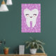 Adorable cartoon tooth on a purple pattern of teeth and flowers - click CUSTOMIZE to add your own text or business logo art - also makes a truly unique gift idea! {{Original art by me, Melanie Taylor - CreativeMel.com}}