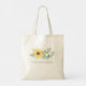 These cute tote bags for women feature a unique sunflower and eucalyptus leaves. Use the template fields to add your custom text or personalisation. Perfect as reusable grocery bags or for small business supplies. Small and bulk tote bag orders available. To see more visit www.zazzle.com/vginvites