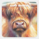 Cute Tough Shaggy Highland Cow Birthday Square Sticker