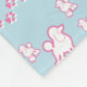 This fleece blanket pattern features cute Toy Poodle dogs that have been groomed and has heart-shaped paw prints. Pink and white on a light blue background. Great for kids and dog lovers.