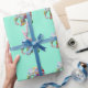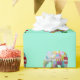 A cute design of a patchwork elephant in pastel rainbow colours against a light sky blue background. This animal is a whimsical, childlike, retro toy inspired design of a popular elephant Savannah African animal.